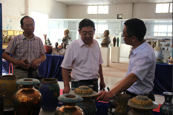崔國(guó)發(fā)副書(shū)記與教授、博士一行深入車(chē)間一線認(rèn)真了解銅工藝生產(chǎn)工藝,隨后在產(chǎn)品展示廳與公司負(fù)責(zé)人就公司發(fā)展和校企合作開(kāi)展情況進(jìn)行了交流。